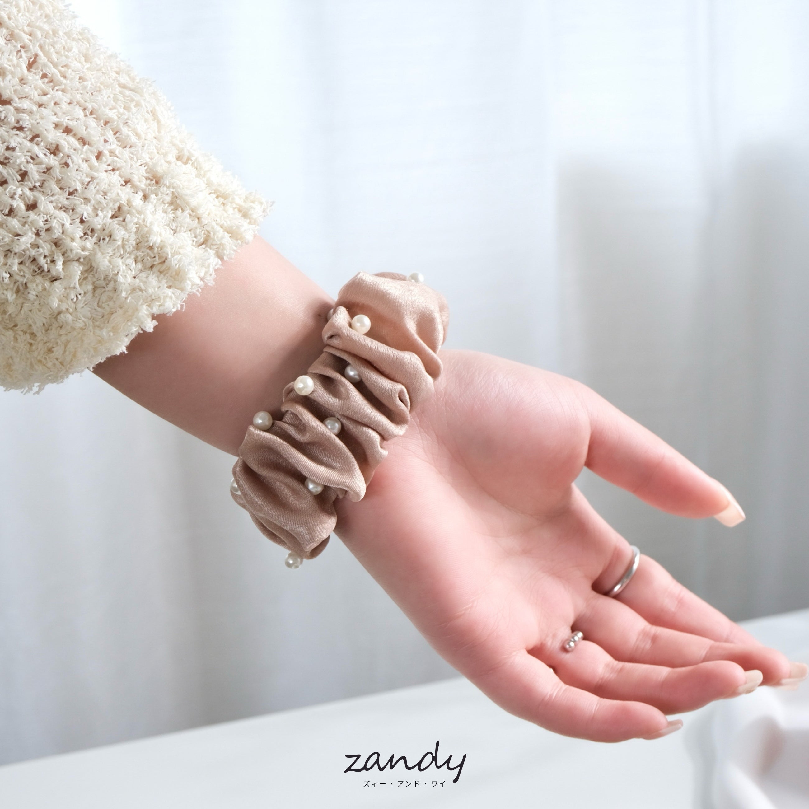 上品なパールをあしらったシュシュバンド。